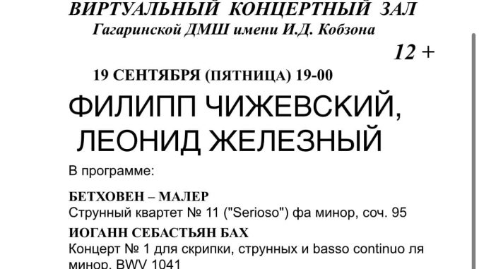 В виртуальном концертном зале Гагаринской детской музыкальной школы покажут выступление скрипача Леонида Железного и Государственного академического камерного оркестра России под руководством дирижёра Филиппа Чижевского.
