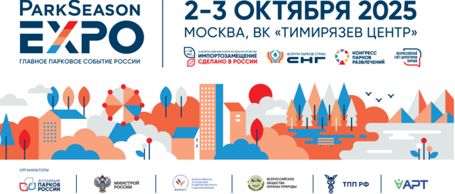 2-3 октября 2025 года в Москве состоится главное парковое событие страны — VI Международная выставка-конференция по созданию, обслуживанию и развитию комфортной городской среды, парков отдыха, общественных пространств и особо охраняемых природных территорий ParkSeason Expo, в рамках которого впервые пройдет Форум парков стран СНГ, а также традиционные мероприятия, среди которых IV Всероссийский форум по благоустройству «Импортозамещение. Сделано в России», II Международный конгресс парков развлечений и производителей аттракционов и III Образовательный слёт директоров парков. Организаторы: Ассоциация парков России, Минстрой России, Всероссийская ассоциация развития местного самоуправления, Всероссийское общество охраны природы, подкомитет по паркам Торгово-промышленной палаты РФ. Генеральный партнер — ГК «Аданат».