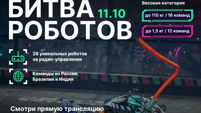 Во втором отборочном этапе Чемпионата сразятся 28 команд из России, Индии и Бразилии: 16 команд в рамках дисциплины «Битва роботов» в весовой категории до 110 килограмм и 12 команд в рамках дисциплины «Битва мини-роботов» в весовой категории до 1,5 килограмм. Среди участников – команды РТУ МИРЭА, СПбГУТ, Вавиловского университета, СПбПУ, Самарского университета, ИРНИТУ и других ведущих университетов.
