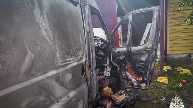 В результате происшествия фургон выгорел полностью, также частично оплавилась пластиковая отделка гаража.