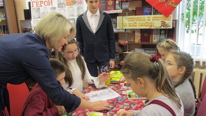 Финалом мероприятия стала творческая мастерская «Сам себе режиссёр» – ребята погрузились в волшебный мир мультипликации. Читатель детской библиотеки Арсений Галкинс рассказал и показал гостям встречи, как создаются мультфильмы, представив в качестве примера свои мультяшные шедевры. Ребята лепили из пластилина декорации, раскрашивали фоны, предлагали свои идеи. Мастер-класс получился очень увлекательным и плодотворным. В итоге общими силами был создан мультфильм о войне, посвящённый знаменательной дате.