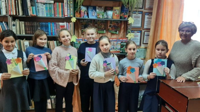 А затем прошла творческая минутка «Букет в подарок»: дети своими руками, с огромным удовольствием создали цветочный букет на открытке. Каждая работа получилась особенной и неповторимой, ведь она была выполнена с любовью.