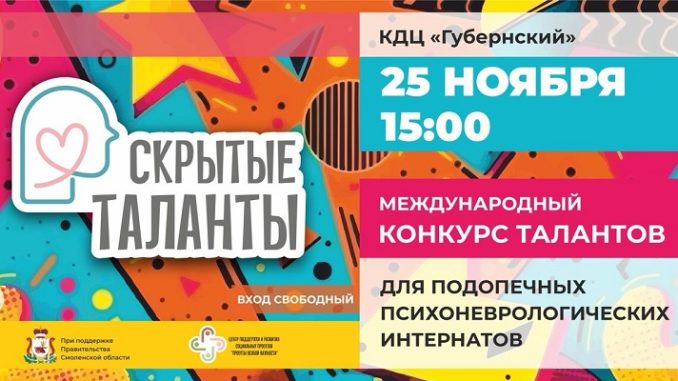 Международный конкурс талантов для подопечных психоневрологических интернатов «Скрытые таланты» организован АНО «Проекты особой важности» при поддержке Правительства Смоленской области.