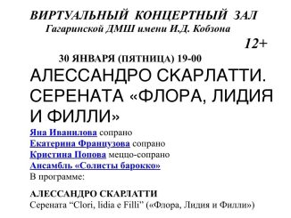 В виртуальном концертном зале Гагаринской детской музыкальной школы прозвучит музыка основателя Неаполитанской оперной школы Алессандро Скарлатти.