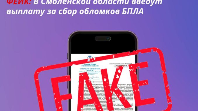 В поддельном документе — поручении главам округов — говорится, что в регионе вводят выплаты в размере от 25 000 рублей за передачу фрагментов сбитых дронов. Губернатор Смоленской области якобы поручил руководителям муниципалитетов информировать жителей о важности сбора обломков