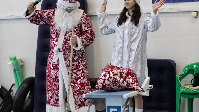 Следом за ними стартовали старшие спортсмены. Каждая команда подготовилась, нарисовав плакат для своей команды и придумав креативное название. На старте были команды: «Подводная братва», «Морские лошади», «Чиловые дельфины», «Сельди с севера» и «Снежные дельфины». Эти эстафеты – не только новогоднее баловство, но и возможность сплотить всех спортсменов в одну большую команду.
