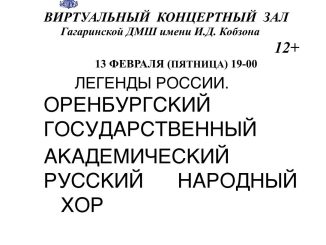 В виртуальном концертном зале Гагаринской детской музыкальной школы покажут выступление Оренбургского государственного академического русского народного хора.