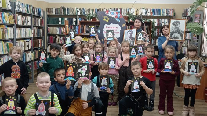5 марта, в преддверии 92-й годовщины со дня рождения первого космонавта планеты Ю.А. Гагарина, в Городском филиале МБУК «Гагаринская ЦБС» с ребятами подготовительной группы «Любознайки» Детского сада «Рябинка» (воспитатель Е.А. Марченко) была проведена познавательная программа «А дети на свете играют в Гагарина…».